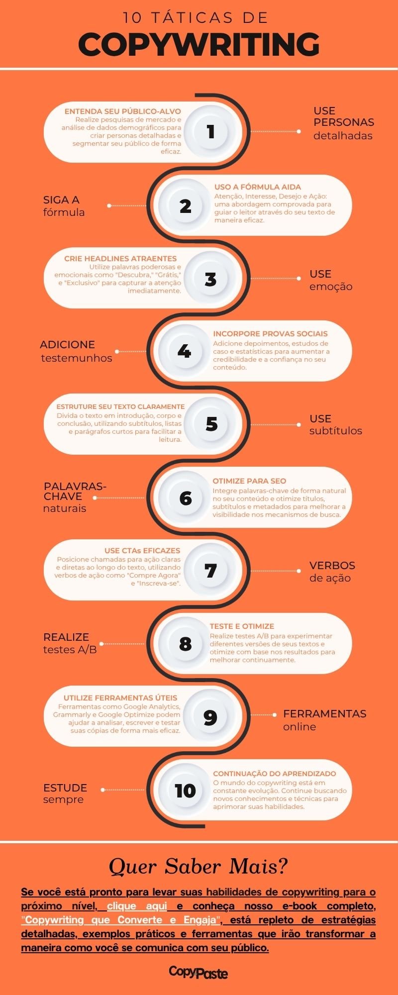 Este guia direto ao ponto apresenta as 10 táticas mais eficazes de copywriting para quem deseja escrever textos mais persuasivos, estratégicos e com alto poder de conversão.
